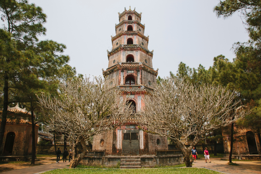 天姥寺:臨江的天姥寺有400多年歷史,是順化最古老的寺廟。天姥寺出名的是門口21米高的福緣塔,塔面向香江,是這裡的標誌性建築,相傳想要多福多緣,可以繞著塔身多走幾圈。