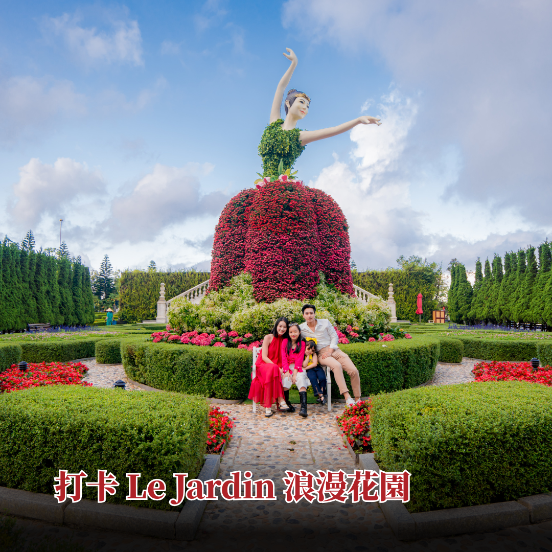 隨後步行前往 Le Jardin D’Amour 歐風花園,欣賞色彩繽紛的花卉景觀,並參觀靈應寺與大佛,感受寧靜莊嚴的宗教氛圍。