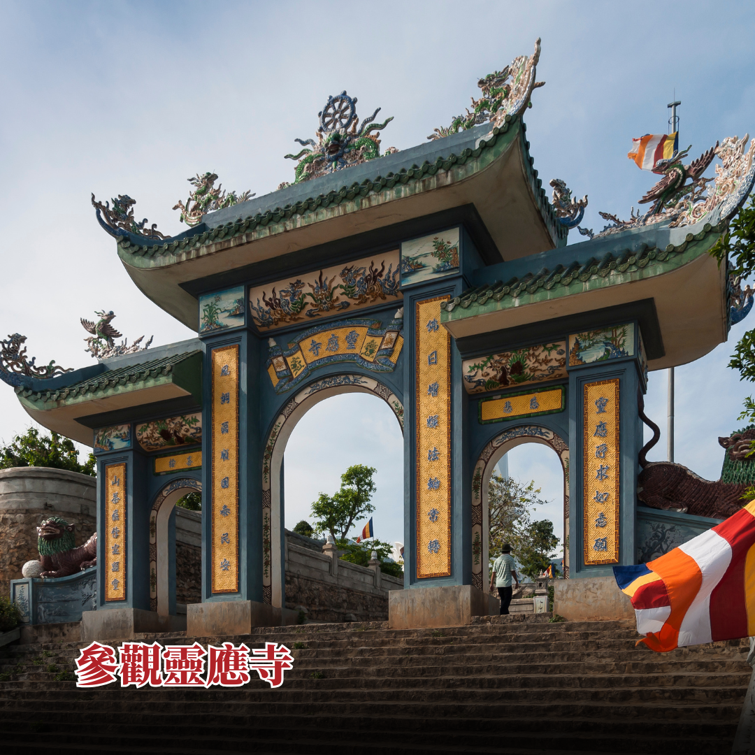 接著前往山茶半島靈應寺,此處擁有東南亞最高的觀音像,從寺廟可遠眺整片海岸線與城市景觀,視野開闊壯麗。
