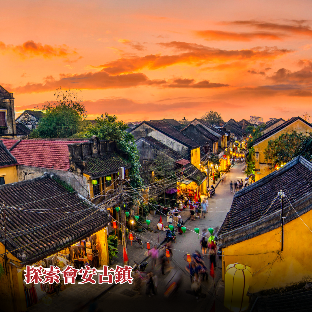 下午前往會安古鎮,參觀日本橋與歷史建築,漫步古街,感受濃厚文化氛圍。
