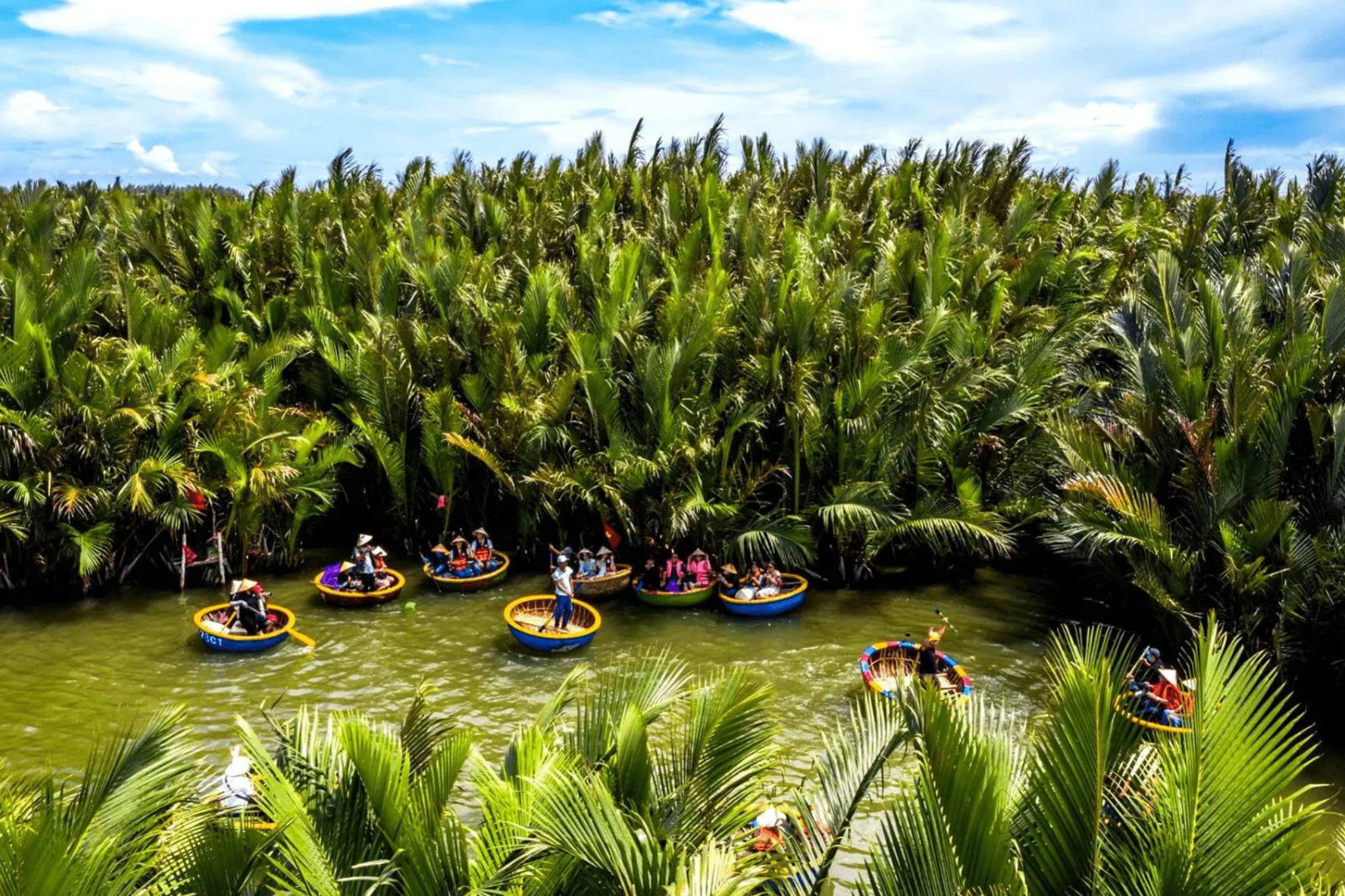 第一個景點是椰子林生態區,體驗有趣好玩的水椰林竹籃船,乘著當地特有的半圓形竹籃船,一路上可見漁夫精湛的撒網表演,還能體驗釣小螃蟹的有趣活動,船伕將用竹葉為您編織精緻的手工藝品,幸運的話還能一睹如旋轉咖啡杯一般刺激的竹籃船表演,您也能一起體驗,享受刺激的快感。