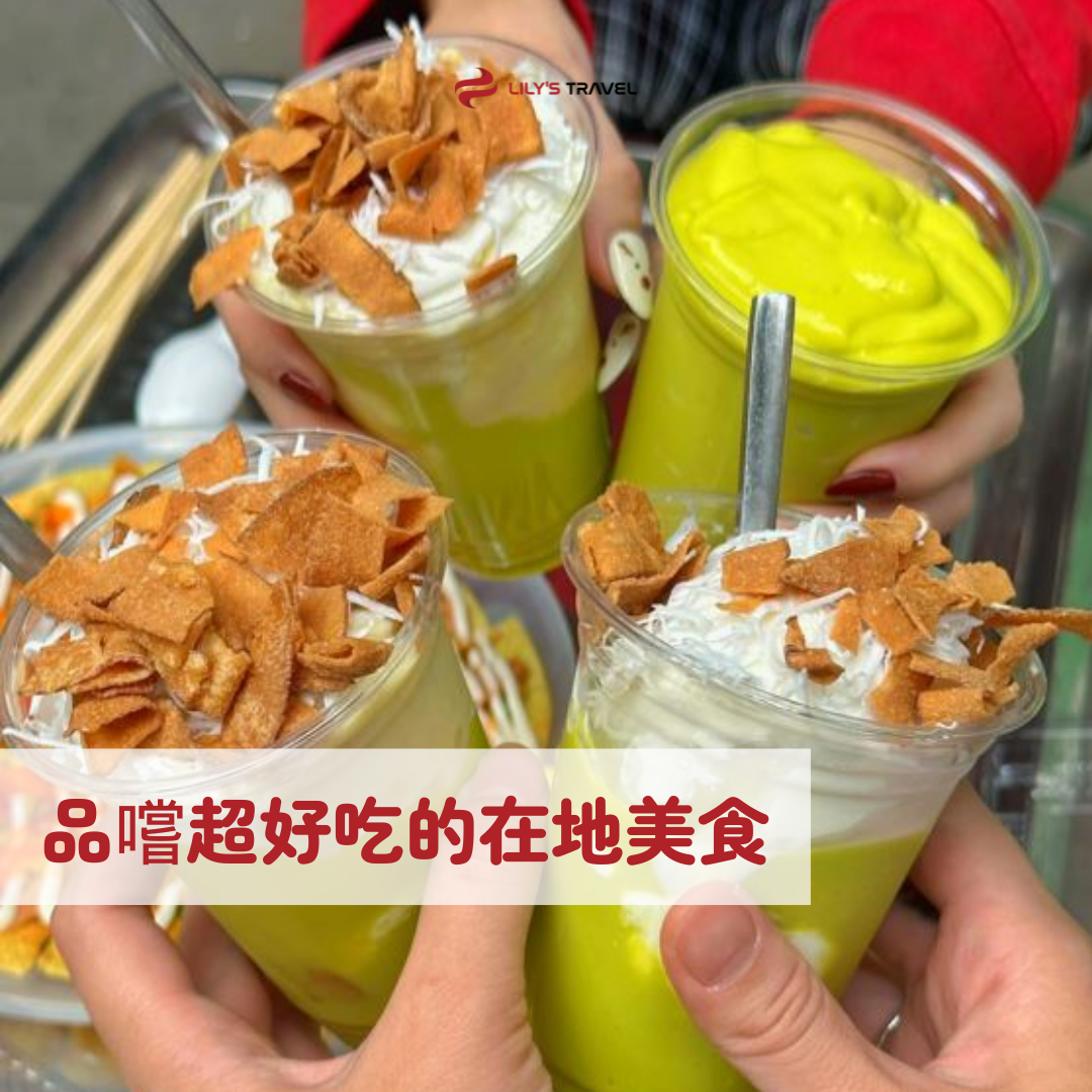 • 品嚐在地小吃:越式煎餅、牛油果冰沙、烤豬肉串與青草涼茶