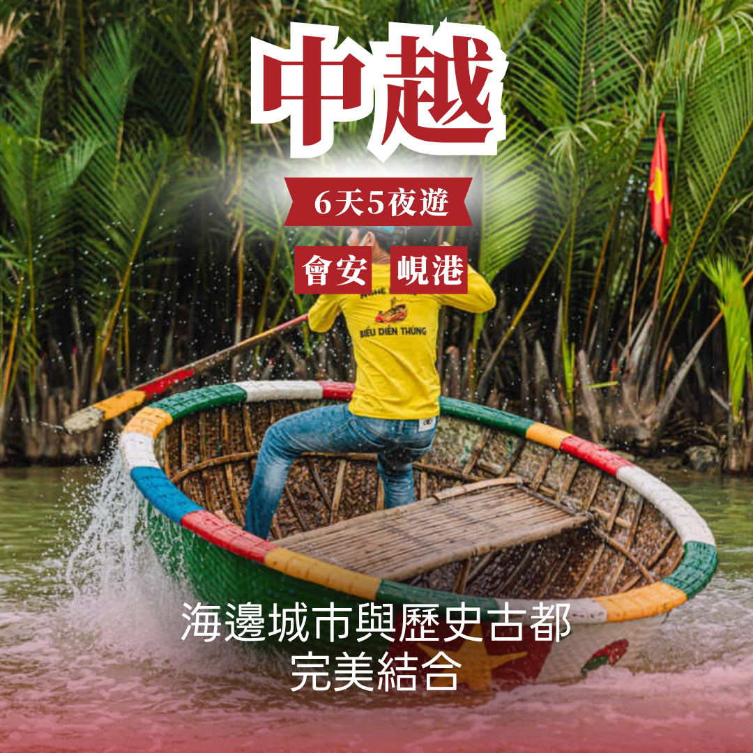 從峴港美食夜遊揭開序幕,跟著在地導遊品嚐街邊小吃、逛山茶夜市、賞龍橋夜景。登上巴拿山佛手橋,暢玩法國村與Fantasy Park,感受雲上世界的童話氛圍。划竹籃船遊椰子林、手作捕蟹,黃昏時登船烤肉賞夕陽。漫遊世界遺產會安古鎮,欣賞傳統表演,探索燈籠街道與古建築風情。最後安排一天自由活動,隨心探索峴港市區,完美結束六日精彩旅程!